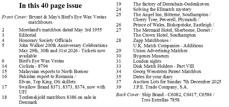 Here are the front covers and tables of contents of the magazines which have been published in 2025. Click on an image to enlarge it.