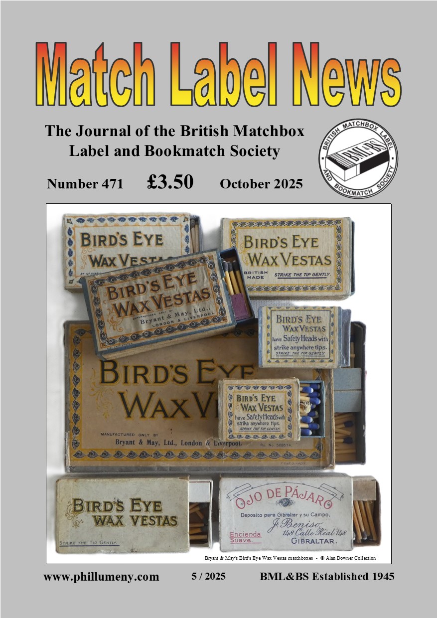 Front Cover: Bryant & May’s Bird’s Eye Wax Vestas matchboxes